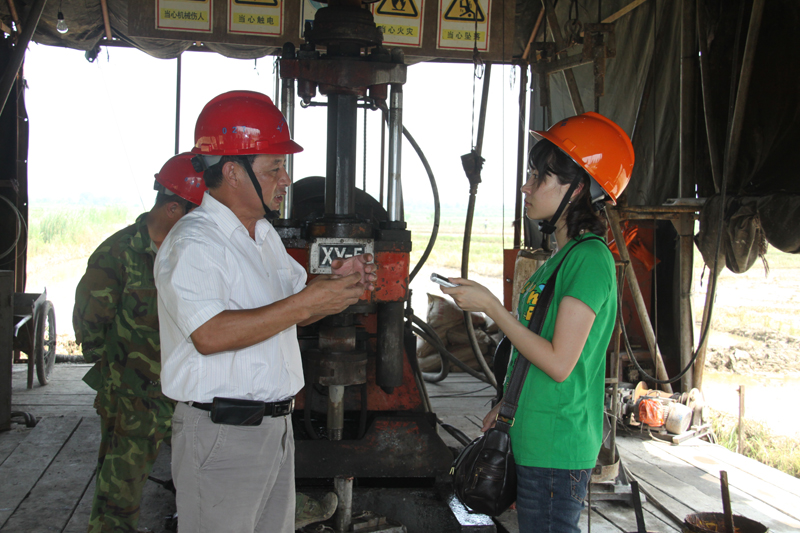 刘斐编辑正在采访我队钻探工程处经理周利胜