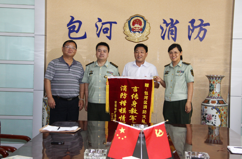 张正副队长代表327队向包河区消防大队赠送锦旗