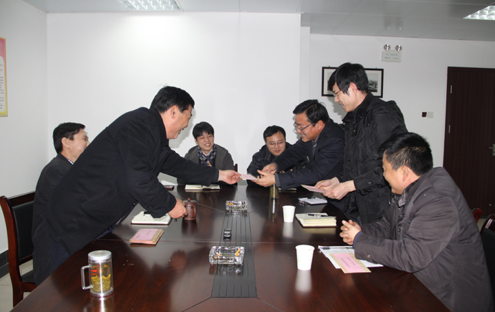 最后,王新民书记受局党委委托、史俊书记代表队党委,分别向挂职干部送上了慰问金,祝愿他们新年快乐,工作顺利。