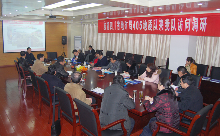 赵宏队长对405地质队一行的到来表示欢迎,他简要介绍了我队的队情队史、发展现状,重点介绍了我队围绕庐枞地区找矿突破取得的阶段性成果,以及队属单位的专业优势和经营情况。他说,我队和四川地区是有着深厚感情的,队属单位曾在四川宜宾等地从事过相关业务,汶川地震我队共向灾区捐款50余万元,并积极要求参加灾后重建任务。希望两队今后能加强业务和专业领域上的交流与合作。