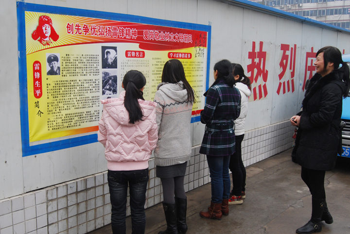 队团委为把倡议全队青年向雷锋学习的活动达到最佳效果,他们特别策划编制一期学雷锋宣传栏,将“学雷锋倡议书”融入宣传“雷锋生平简介”、“雷锋名言”内容之中,让雷锋平凡而伟大的事迹激励青年同志学习雷锋精神,爱岗敬业、勤奋学习,关心他人、助人为乐,积极投身到地勘经济改革发展的浪潮中,奉献无悔的青春。
