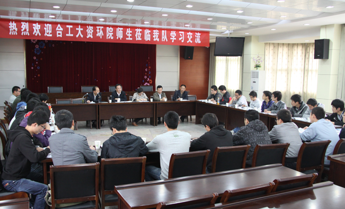 赵宏队长在交流会上,首先对合工大资源院师生的到来表示欢迎,并与张千明总工程师分别向合工大资环院的师生们介绍了我队队史队情和主要矿区分布及进展情况。乐嘉禾科长结合我队近年来的招聘情况,为即将毕业的大学生作了就业指导。