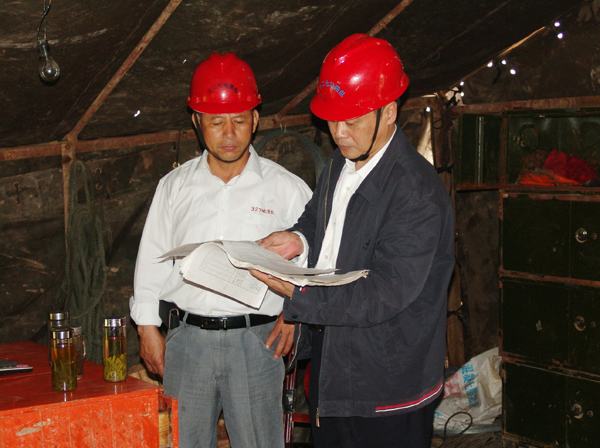4月29日,队长赵宏、副队长倪晋贵等一行6人赴庐江沙溪铜矿项目部进行调研,并亲切地慰问了节日期间仍然坚持工作在生产一线的干部职工。随行的有队安全探矿科科长宫六零、副科长吴志刚和队安岩公司副总经理武长民、党总支书记程卫国。