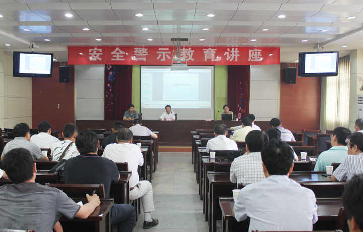 6月16日下午,327队开展了安全警示教育活动。赵宏队长出席活动并讲话。队邀请马鞍山市建筑管理处安全站总工程师、国家级建筑安全专家陈秀峰做专题讲座,活动由队安全探矿科科长宫六零主持。队属地建公司、岩土公司、工勘院、爆破公司等单位负责人和各项目部负责人、安全员参加会议。