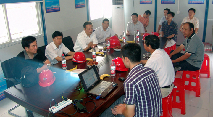 7月3日,队长赵宏、党委书记王新民、副队长倪晋贵、工会主席赵安庆一行四人赴安徽岩土高速滨湖时代广场项目部,了解项目进展,检查项目安全生产状况,并慰问高温下坚持施工的项目部全体工作人员。