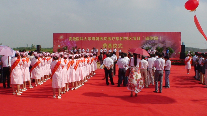 8月26日上午,队岩土公司承接施工的安徽医科大学医疗集团东区项目(第四附属医院选址迁建工程)桩基工程举行开工奠基仪式。安徽省人大常委会副主任沈卫国、省卫生厅副厅长李劲风与合肥市委常委、副市长韩冰等省市领导出席了开工仪式并为项目奠基。