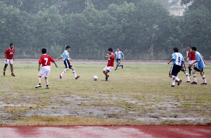 雨中赛足球 友谊情更浓