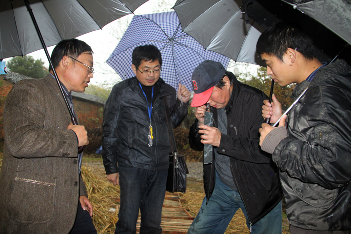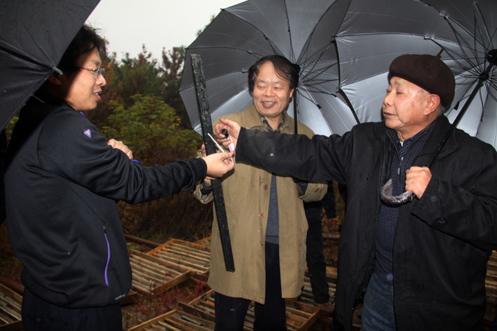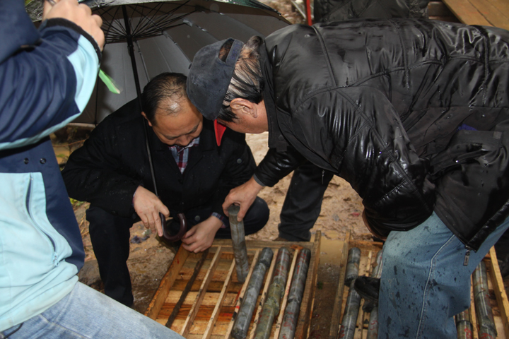 李建设主任、陆三明博士、汪涵璋专家在察看岩矿心