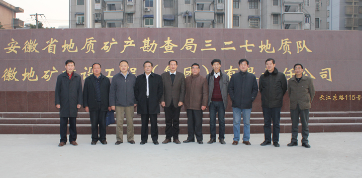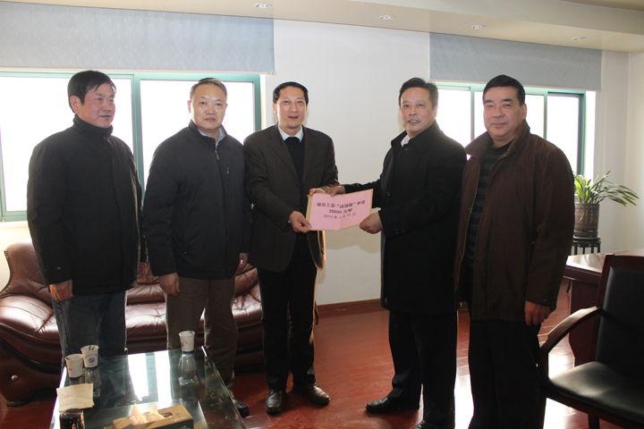 局纪委书记朱学文(中)、地质工会主席王宁川(左二)代表省总工会给予我队“送温暖”资金