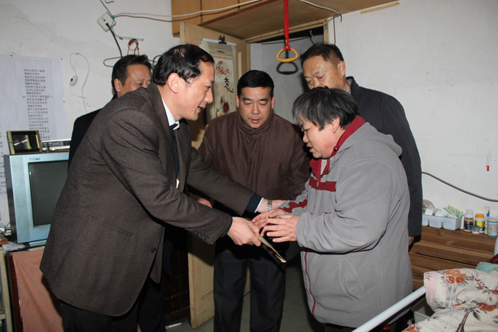 朱学文书记一行看望特困职工家庭并送上慰问金