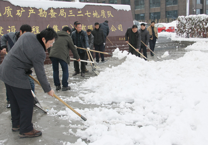 昨夜,一场春雪把合肥妆扮得银装素裹、分外妖娆。在人们欣赏美景的同时,深达10厘米厚的积雪也为百姓出行造成了困难。为了我队大院职工及家属出行安全,今天一上班,在队领导的带领下,机关各科室和实体干部职工纷纷走出办公室,居民也走出家门,用铁锹、扫帚清除地质大院道路上的积雪。经过近两个小时的劳动,道路上的积雪被清除得干干净净,此时,天空也仿佛感谢我们的劳动者,露出了灿烂的笑脸,残留的雪水在阳光的照射下,很快被蒸发。行人在路上又与平常一样迈起了轻松的步伐。