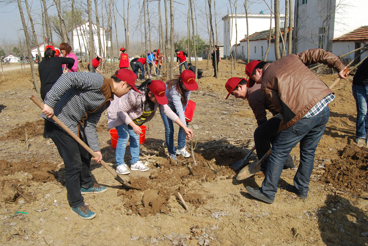 6日下午, 部分团员和青年党员还来到美好乡村创建点东瞿大郢,与逍遥津街道团工委、大杨镇团委、三十岗乡团委等单位联合开展义务植树活动。青年职工们挥铁锹、挖树凼、栽果苗、浇定根水。经过近2个小时的劳动,他们为孤寡老人、无人户在房前屋后栽种桃树、石榴、柿树等果苗。