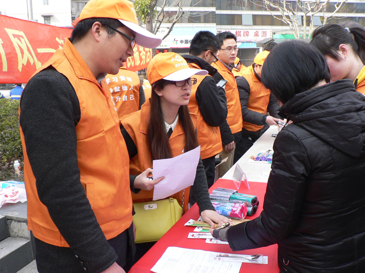 同时,在队生活区广场和上海市潍坊社区同时开展的志愿服务活动现场也是热闹非凡。队青年职工和队属岩土公司上海分公司的志愿服务队员们,或认真讲解废旧电池等电子废弃物对环境的危害,宣传环保知识;或站在置换台前,用家居小礼品换取居民手中的电子废弃物,鼓励人们共同关注环境、远离污染。