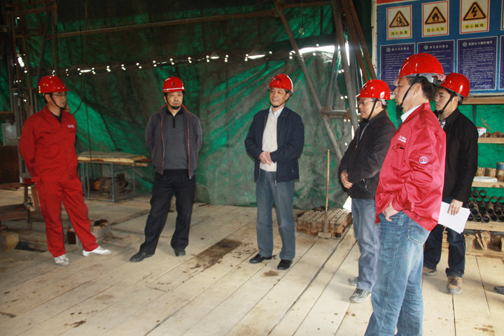 徐泰松总经理在ZK2-1开钻仪式上发表了简短而热情洋溢的讲话,他首先向我队表示祝贺,并代表罗河矿业公司欢迎我队地质工作者在罗河矿区第二找矿空间开展钻探工作。徐泰松总经理说,罗河铁矿是327队地质工作者找出来的,没有327队就没有罗河铁矿。希望327队在罗河矿区找矿第二空间找到更大的铁矿床,为罗河铁矿增加后备资源。