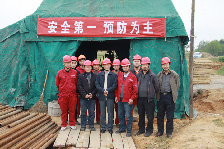 4月11日10时08分,我队在罗河矿区第二找矿空间布置的ZK2-1开钻。马钢罗河矿业有限责任公司总经理徐泰松应邀与我队相关部门负责人共同出席开钻仪式。