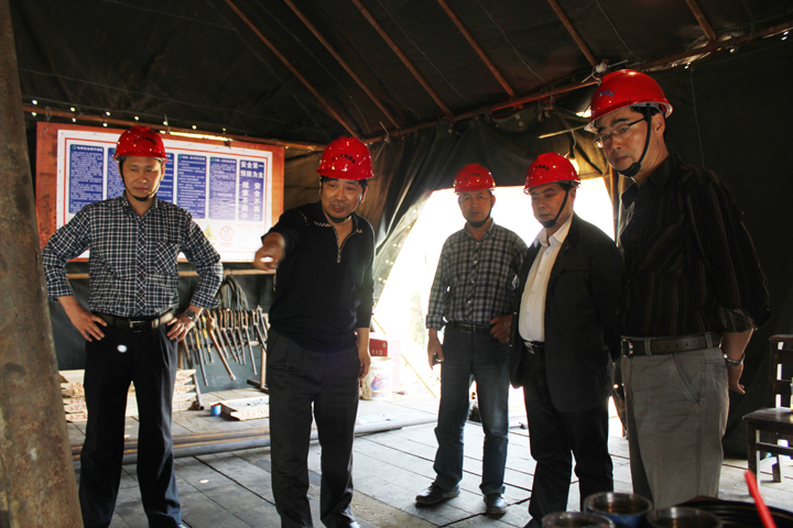 队领导一行在钻探施工现场指导工作