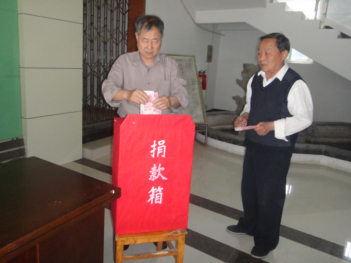 4月27日,我队向雅安芦山地震灾区捐款仪式启动,队领导带头捐款,队机关党员、职工紧随其后,纷纷在捐款箱投下一片爱心。队实体各单位和项目部也积极组织捐款活动。当离退休老同志得知队党委向灾区捐款的号召,他们不但慷慨解囊,还亲自到离退休管理科设的捐款箱现场献爱心。其中汪祥云、郝效智、袁仰贤三位老同志各捐款500元,体现了老一辈地质人对灾区人民的深切关怀,还有不少家属党员和外聘职工也纷纷捐款,尽一份绵薄之力,以实际行动支援灾区人民抗震救灾,重建家园。