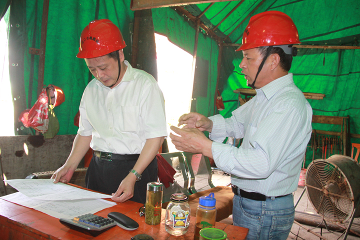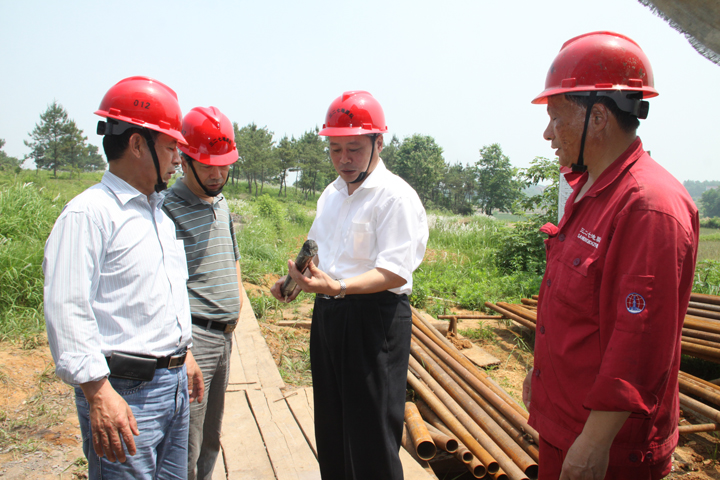 522日上午,赵宏队长赴我队庐枞找矿一线检查指导工作,队安全探矿科科长宫六零和钻探工程处经理周利胜陪同检查。