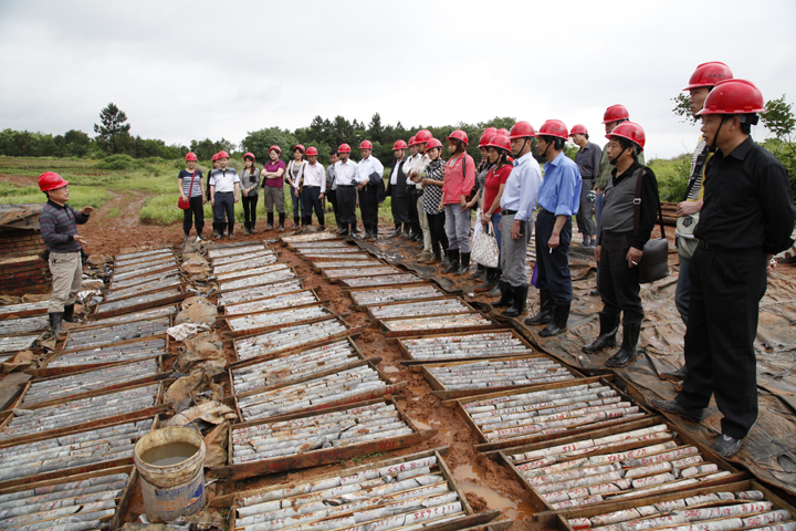 6月8日,队组织机关科室部分干部职工到我队庐江小包庄铁矿普查钻探施工现场参观学习。队领导赵宏、方招信、陈勇,局巡视员王新民也亲赴找矿一线指导慰问。
