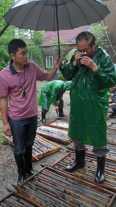 上午,省厅专家唐永成、汪祥云、毕治国在副队长、总工程师张千明,小包庄铁矿普查项目组负责人高昌生的陪同下,冒雨前往我队组织实施的小包庄铁矿普查钻孔现场,实地察看ZK2-1岩矿心后,下午不顾疲劳,又来到我队参加小包庄铁矿普查项目研讨会,专家们对我队小包庄找矿取得重要突破表示祝贺,并和我队与会人员深入探讨了该项目的下步工作,提出下步找矿以及加强综合研究的指导意见。赵宏队长在会上表示,我们一定按照省厅、省局领导和专家的要求,加强综合研究,努力做好下步工作,努力扩大地质成果,按计划按时提交地质报告。