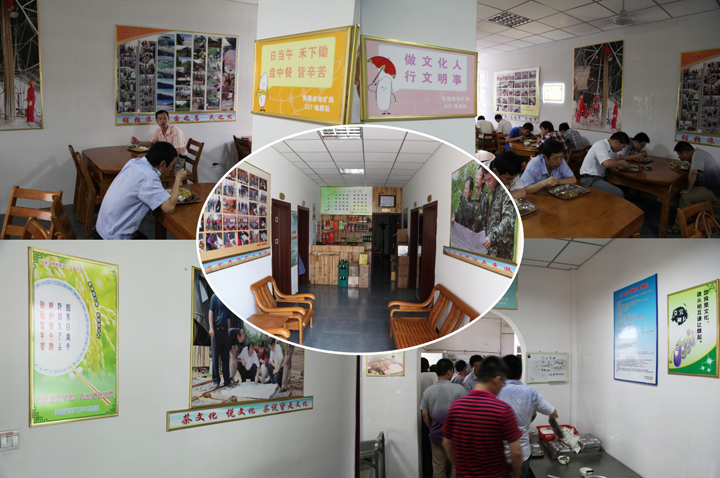 走进队职工餐厅,“文明餐桌公约”即刻映入眼帘,墙壁旁侧,“文明用餐,节俭惜福”的字样也让人感受到文明新风迎面扑来,沁人心脾。队职工餐厅用精心制作的“文明公益广告”或“温馨提示”台卡等宣传节俭点餐、文明就餐的新风尚,营造勤俭节约、低碳生活的良好氛围。同时还利用墙面展示我队在庐枞、海外等地地质找矿、工勘施工的场景,宣传地质人“三光荣”精神及“先行、创新、和谐、奉献”的地矿文化精神内涵。