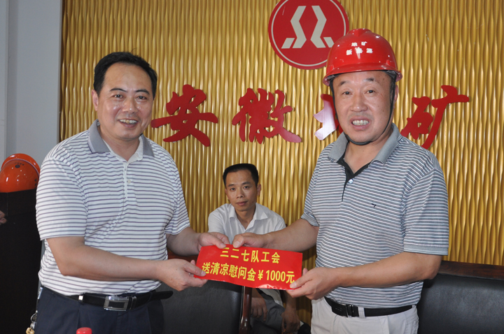 方招信书记指出,本次送清凉活动是队工会发挥服务职能,结合实际,确保职工身心健康,把真情关心职工落到实处而开展的自身特色活动之一,同时也是一次对工程项目的安全检查和督促。他提出几点要求:一是希望大家要把职工安全放在首位,牢固树立“安全是效益,安全是政治,安全是稳定”的思想理念,做到安全工作万无一失;二是地矿家园项目各施工单位要克服工期紧、任务重的压力,相互之间要做好沟通、协调、调度工作,圆满完成地矿家园工程任务;三是岩土公司要把岩土交通银行金融服务中心(合肥项目)一、二期桩基工程建成一个标志性工程,把好质量关,做出岩土一流水平。方书记还询问了职工收入情况,指出要处理好公平和效率的关系,同时还要兼顾质量对其的影响。