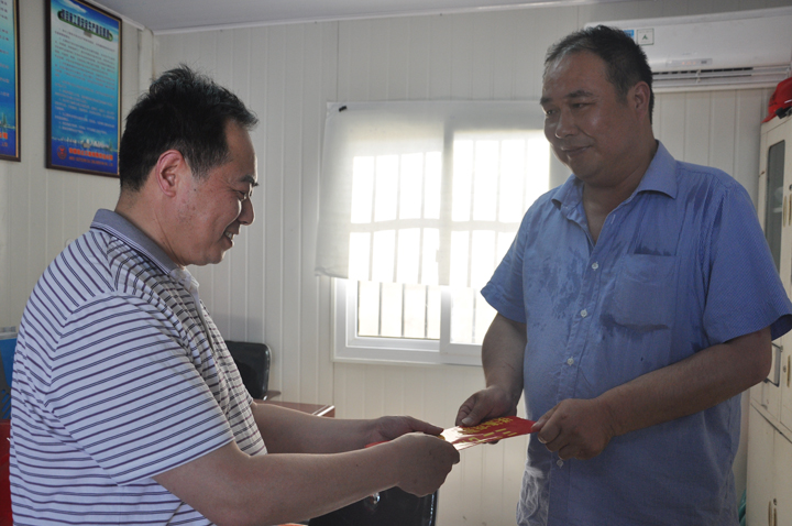 方招信书记一行在队岩土公司施工现场慰问检查 方招信书记一行在队地建公司施工现场慰问检查 方招信书记为职工送上慰问金 方招信书记为职工送上慰问金