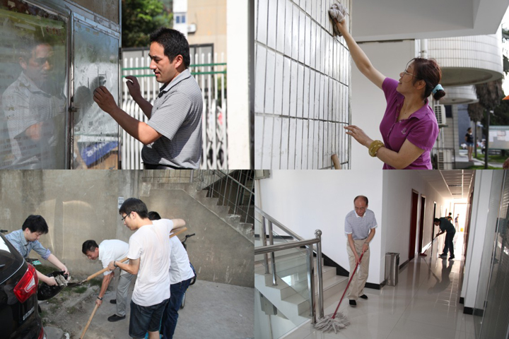7月3日上午,太阳炙烤着大地,室外气温逼近40℃,而我队上上下下、楼内楼外都是一片劳动的光景。这是我队党员职工们在清扫工作、生活区的环境卫生,用实际行动响应该队党委组织的“党员奉献日”主题活动。