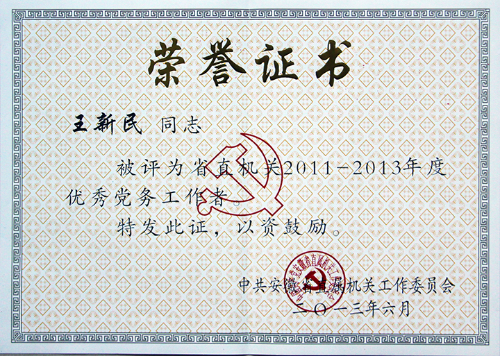 6月28日上午,省直机关纪念建党92周年暨“一先两优”表彰大会在省委小礼堂隆重举行。局第三巡视组组长、我队原党委书记王新民同志在这次表彰会上被授予“优秀党务工作者”称号。