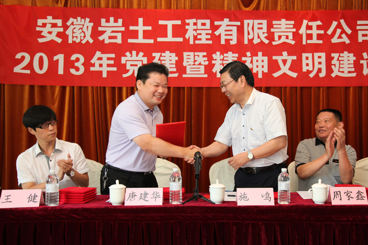 会上,施鸣处长、周家鑫主任分别讲话,充分肯定和赞扬了队岩土公司上海分公司作为安徽省进沪建筑企业在党建和精神文明建设上所取得的骄人成绩。