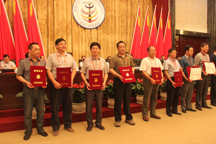赵宏队长(前排左四)上台领取“百强地质队”证书