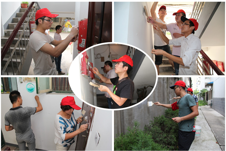 7月31日16时许,虽近傍晚,但室外仍骄阳似火,炙热难耐。队团委联合廿埠社居委,组织20余名青年志愿者在生活区开展了“洁净墙面”的志愿服务活动。