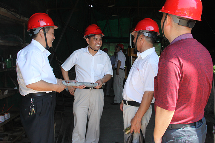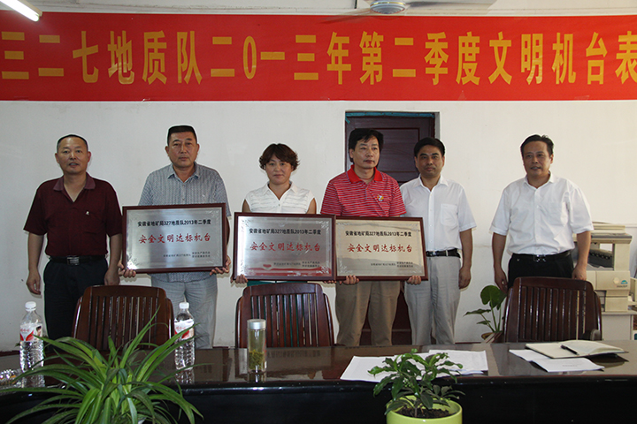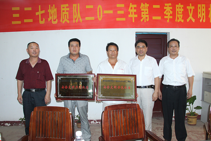 8月6日上午,省地矿局副局长施申轶一行冒着38℃的高温来我队进行安全生产检查,并出席我队第二季度安全文明机台表彰会。
