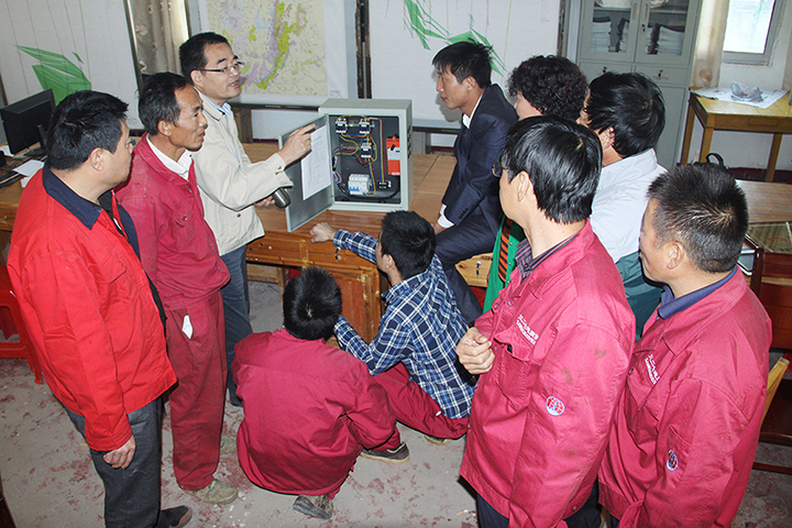 据安全探矿科副科长、探矿高级工程师吴志刚介绍,该装置不仅具有无线的应急功能,还备有上限限位的行程开关,可以确保活动工作台正常运行和作业人员的安全。