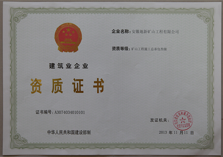 11月28日,从队安徽地新矿山工程有限公司获悉,我队已获得矿山工程施工总承包叁级资质。在全局找矿不断取得新突破的大好形势下,我队取得的矿山工程施工资质,能够更好地服务于地勘单位对矿山的建设与开发。同时,在我队已有地质找矿、工勘、地建、岩土等多项资质的情况下,矿山工程施工资质的取得也为我队增添了新的经济增长点,为我队持续稳定健康发展注入新的活力。