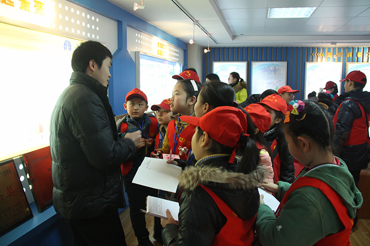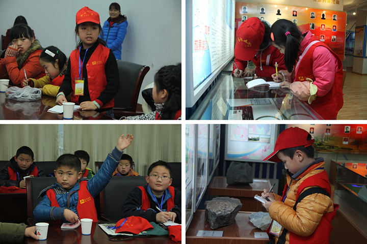 在我队队史陈列室,合晚小记者们记录着我队简介、发展史以及获得的一个又一个找矿成果、地质服务项目和工勘施工优质工程……不时地发出一阵阵赞叹:“他们的工作都是在野外,不但辛苦还很危险,他们都是很伟大的人!”“这么多的成就,他们得付出多大的劳动和艰辛啊!”“我们要以他们为榜样,不怕辛苦、努力学习!”
