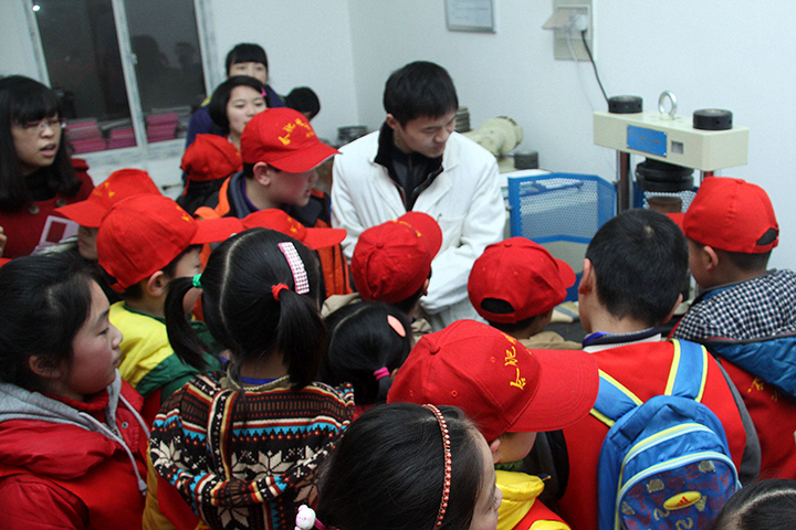 在参观队测试中心时,小记者们的好奇心得到了极大地满足。“这个像洗衣机一样的机器是什么?”“这是量筒吧?”“这个机器是用来脱水的吗?”……一会儿看看这个,一会儿问问那个,还时不时用带来的手机、相机拍摄下感兴趣的东西。“看,这个就是砂岩!”一位小记者一脸欢喜地拿着一块砂岩向工作人员展示。活动结束之后,很多小记者都拿到了岩石样本作为纪念品,仿佛获得了稀世珍宝一般。