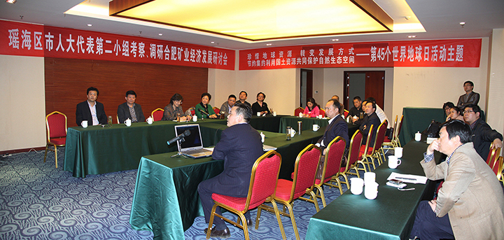 4月22日,值第45个世界地球日,瑶海区市人大代表第二小组一行15人在我队队长赵宏、党委书记方招信、副队长、总工程师张千明的陪同下,前往庐江矿区实地考察、调研矿业经济发展和资源、环境保护情况。合肥市人大常委会副主任杜昌寿得悉代表们此次活动主题后,特意赶往庐江参加由我队牵头组织的合肥矿业经济发展研讨会。瑶海区人大常委会4位领导也与代表们一同考察、研讨。