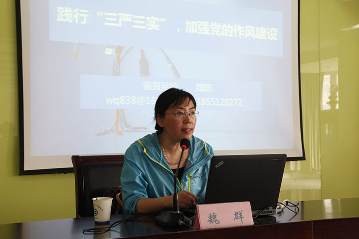 培训班邀请了省直工委党校魏群副教授做了《践行“三严三实”,加强党的作风建设》的辅导报告。报告从“三严三实”提出的背景、内容和新意等方面进行了深刻阐述,并就贯彻“三严三实”持之以恒转作风提出了三点指导意见,一是从严要求,以焦裕禄精神为镜;二是实干兴邦,以实际行动深化改革;三是持之以恒,以作风建设巩固教育实践活动成果。