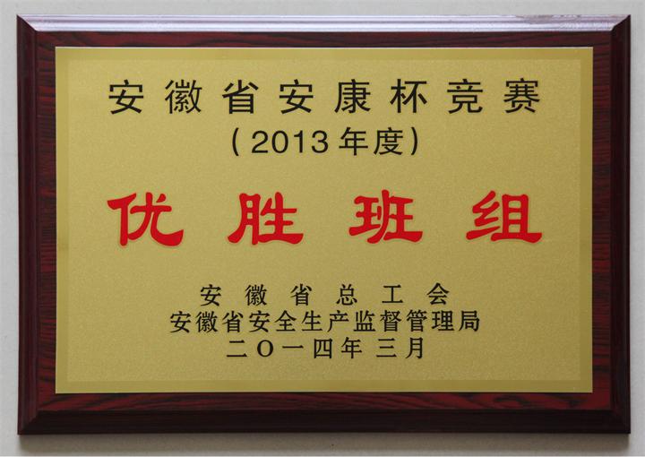 近日,中华全国总工会、国家安全生产监督管理总局联合发文表彰2013年度全国“安康杯”竞赛优胜班组中,我队钻探工程处榜上有名。除此之外,我队获评安徽省劳动竞赛先进集体,队钻探工程处5号机台还捧回了2013年度安徽省“安康杯”竞赛优胜班组奖牌。