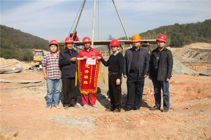 11月5日上午,队党委书记方招信一行首先赴水电公司南京安基山铜矿尾矿库辐射井项目施工现场进行调研,并在现场为项目部颁发了10月份优秀班组奖旗和奖金。