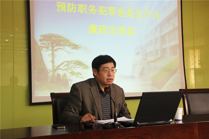王检察官以《预防职务犯罪也是生产力廉政出效益》为主题,贯彻十八届四中全会精神,结合自身办案的经历,融合工作多年来的所感所想,以案说法,以情动人,对预防职务犯罪进行深入细致地讲解。王检察官告诉大家“手莫伸,伸手必被捉”,千万不要报有“侥幸”心理,要想人不知,除非已莫为,否则,不仅为国家、为社会带来危害,更给自身和和家庭带来灾难。