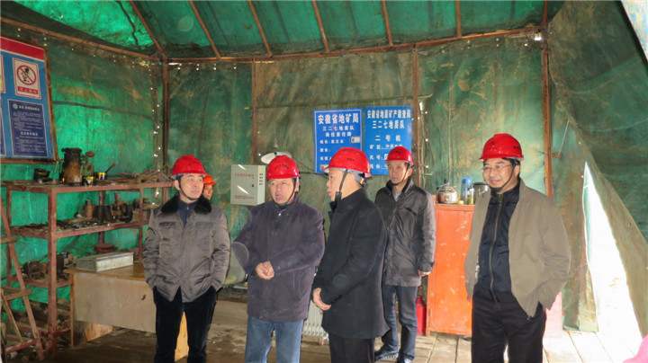 2014年12月28-29日,省地矿局安全生产责任状考核组来我队考核,考核组一行先是在我队相关人员的陪同下赴庐江检查了机台安全生产和廿埠老基地的安全管理工作状况,随后听取了我队2014年度安全生产工作汇报,查看了安全生产台帐,并了解了我队正在进行的科研项目在现场的实际运行情况。