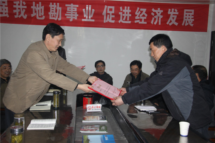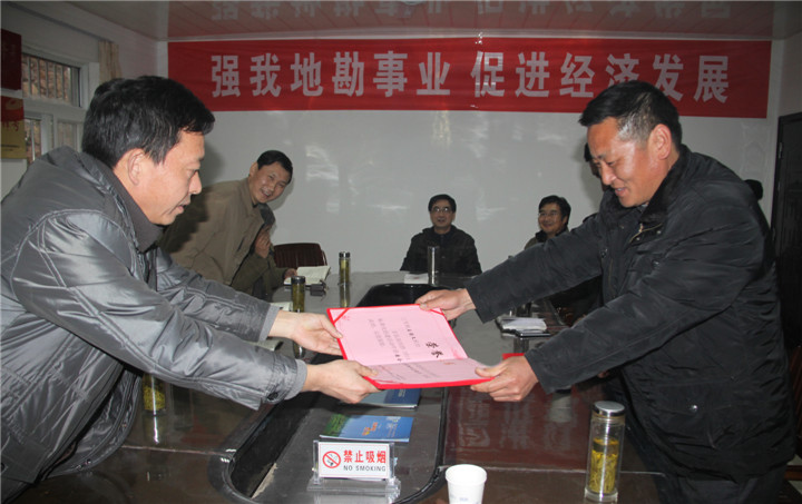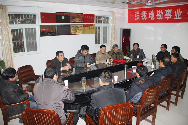 1月27日,队在庐江廿埠基地钻探工程处驻地会议室召开了2014年下半年度安全文明机台现场表彰会。队工会主席、纪委书记史俊出席会议,队办公室主任马波,劳动人事科科长朱建军,安全探矿科科长宫六零,副科长吴志刚,安徽岩土公司副总经理武长民以及钻探工程处负责人、各机台机长参加了表彰会。宫六零同志宣读了表彰决定。队属5号机(张道科机台)荣获安全文明示范机台称号,3号机(王德文机台)荣获安全文明达标机台称号。