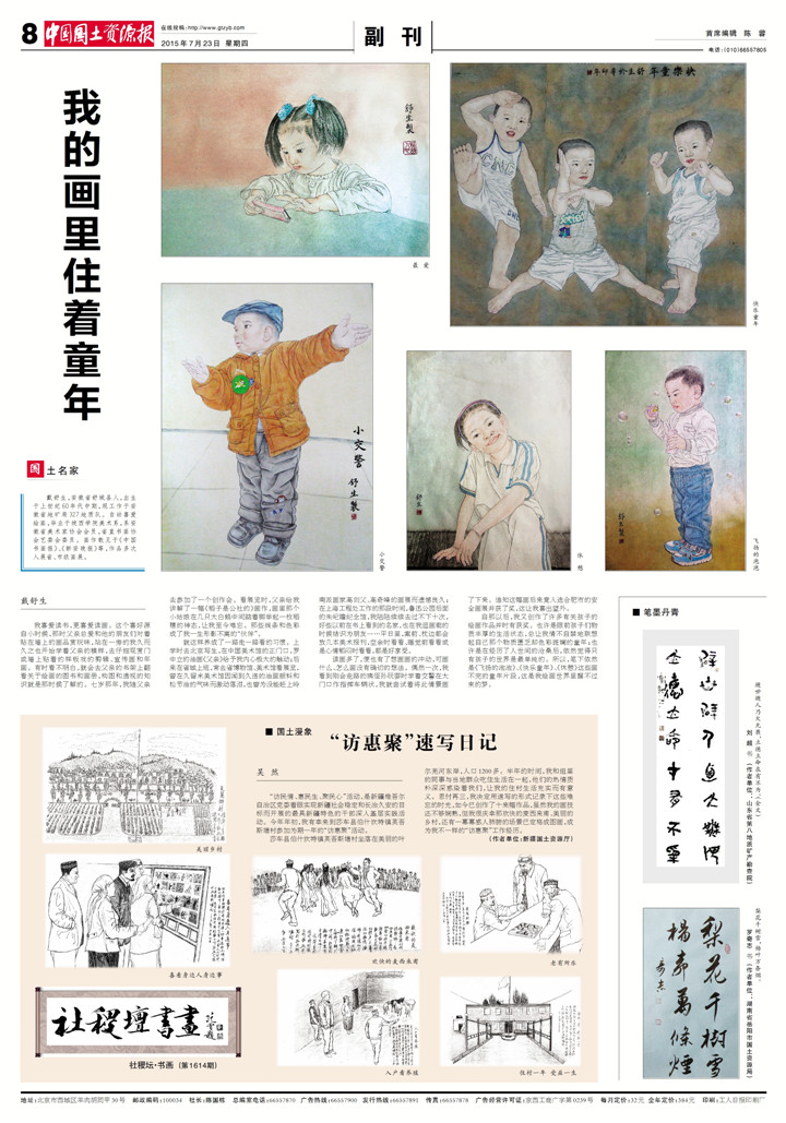 7月23日,《中国国土资源报》在副刊版用半版篇幅推介了我队职工戴舒生的画作。以下为刊发内容: