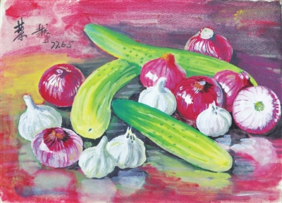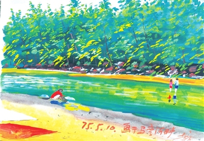 山乡春色(1970年3月 戴振宇作) 我父亲戴振宇小时候由于有着不俗的绘画天赋,从十二三岁起就饿着肚子(当时家庭生活困苦)站在梯子上,整天给镇上文化站画用8张整开白纸连在一起糊在木板上的布景和宣传画。那些信手画来的亭台楼阁、青山绿水栩栩如生,引得乡亲们从五里八乡赶来争相观赏,他的画名就从那时传开了。1959年,因为户口问题父亲错失了去六安艺校专业学习的机会,更为可惜的是,他于1959年以前创作的全部画作却被艺校招生老师带走了。 我是看父亲的画长大的。最初记忆是我5岁的时候,那时正值上世纪六七十年代,镇西不远处公路上有个大坎,两边是荒草山。隐约记得一天下午,母亲把我带到此处,看望正在这里一个语录碑上画巨幅领袖像的父亲。父亲见到我们,就从高高的架子上下来。我记得那天天空湛蓝,微风轻拂。 速写人像一(1976年8月 戴振宇作) 速写人像二(1976年3月 戴振宇作) 家里墙上自然是挂满父亲的画。有一幅油画画的是一个女子春天在水塘边洗衣服的背影。清清的塘水,跃出水面的鱼,桃花树下扑蝶的花猫,小石桥外水塘连着一片淡黄的油菜花地。远处树吐嫩绿,青山连绵。画上题了父亲填的词《蝶恋花》。另一幅,一群左邻右舍的女子来看新娘,新娘坐在床沿上,正要站起身来。画面下方的炭火盆里炭火烧得正旺…… 那时父亲经常拿起碳铅笔,用一个十六开的计分板夹上白纸,写生家人肖像。我们经常被要求坐好不动,只有不到十几分钟,可我觉得时间还是好长。虽未经过美术院校各种体系的素描训练,父亲线面结合的人物写生,也是结构严谨,迅速、精到、形象。他每年都被抽调到区里参加工作组,跑遍下面各个公社和大队,凭着一截碳铅笔画了大量的工人、农民头像速写。时隔多年后还有人能记起这件事。 父亲常常画水粉静物。家里买了水果,父亲先要画出来,然后再分给我们。等吃西瓜最着急。好不容易盼到买一个西瓜回来,切开后,空气中满溢着香甜气味,可父亲却要让我们耐心等,看他画。只见他先将半个西瓜放在后面,左面或右面放一切出1/4的瓜块,然后再把另一1/4瓜块竖切成几小块放在前面,同时还要母亲找一块他认为合适的布作为衬布。父亲告诉我们,画西瓜的关键是要掌控好水分的多少。这不,他笔下的西瓜新鲜、饱满,活生生地展现在纸上。 消暑(1977年11月 戴振宇作) 菜(1977年6月 戴振宇作) 父亲喜欢画秋菊。他有一个林场工作的朋友,送了他不少品种的菊花秧子,他一棵棵栽到瓦盆里。深秋时节,院子里各种菊花竞相绽放,黄的、白的、紫的、红的,有的像狮子头,有的似龙爪……父亲先考虑花的颜色,然后用大笔刷背景色,等底色干后再用圆头笔一笔一片花瓣,最后用明亮的颜色稍作提亮。画好后,是满纸的精神和傲骨。有一幅,父亲在上面填了一首《忆江南》:金风起,含笑开东篱。耻和百花争春秀,岂与众草比高低,冷暖心自知。 水粉写生(1977年12月 戴振宇作) 母亲去马鞍河洗衣服,父亲挑着衣服,带着我和妹妹一起去,到了以后父亲专心画他的画:浅黄白亮的沙子、清澈的河水、岸上的树、以及两个玩水的小孩都进入他的画中。母亲将洗好的衣服、被面,铺在沙滩上晒干后。父亲又挑着衣服,带着我们回家。 风景速写(1975年5月 戴振宇作) 父亲最早教我画画,是画在他正创作的一幅油画上:一个年轻男子站在一棵老柿子树枝丫上,看他的妻子捧起双手,接他抛下的长有三个柿子的小树枝,树枝上还有几片柿叶,画面右下方的草地上一堆柿子边上坐着两个小孩在互相说着什么,画面上方有一角蓝天白云,一群大雁正向南方飞去。父亲在画满树柿子时,用笔蘸了饱满的红柿子颜色,然后抱起我,要我大胆往树上点。我很茫然,不知所措,最终画下去,下笔很重,那一点显得很笨重,至今我还能感觉到当时手上所用的力量。 还有一幅画令我记忆犹新。那时正兴移风易俗,父亲创作了一幅名曰《迎新郎》的画,画的是农村男子倒插门到一独生女家的场面,画面的中心新郎和新娘在众人的簇拥下往新娘家走去。我记得很清楚,为了这幅画的题目,父亲着实费了一番心思。这幅画后来被选中参加了当年省里的画展。当年腊月,县文化馆来信说《迎新郎》被印刷成了年画,在新华书店发行。父亲和同事一起天天去镇上的新华书店看那里卖的年画,终究没有看到自己的作品,不知发行在了哪里。 静物(1977年12月 戴振宇作) 父亲将自己的写生装订成一本画集,我翻看过无数遍。因生活所限,这些画都画在各种空白纸上,父亲老是自夸,说他画完画的洗笔水不脏,透过他画作的画面就可以看出他对所用颜料的珍惜和慎重。绘画材料的限制并没有影响画面的生动效果,其中不少风景写生作品,记录了他十几岁到四五十岁时所到过的地方。一幅幅水彩、水粉和碳铅速写,画面都那么空濛灵秀、清朗透明,带着浓浓的诗意,洋溢着对生活的热爱。龙河口水库、将军山大渡槽建设时的场面也被他用速写形式记下来,整理后,入选了那个时代省里的工农兵画展。除了家乡的风景,还有反映了半个世纪前如合肥大蜀山、逍遥津、三河新河、巢湖、六安大淠河、霍山黑石渡等地的四季风貌和乡土风情的画,这些应该是极为珍贵的地方图像资料吧。画集里还有后院老柿子树、我家老屋当年模样、街道早市的热闹场面以及老街旧时风貌,有四时瓜果和生活物品。通过这些画,让我又