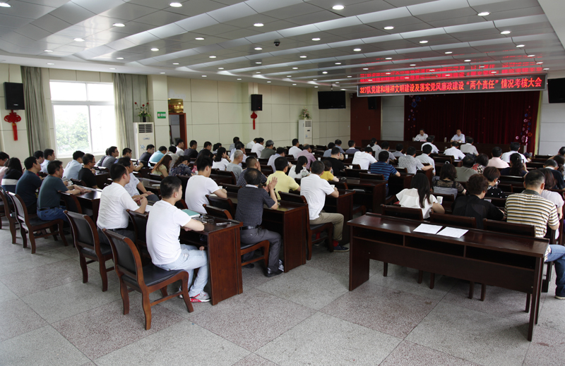 6月24日,局双文明第三考核组张福友、杨昶明、袁远一行来我队开展2015年度党建和精神文明建设及落实党风廉政建设“两个责任”情况考核工作。队领导、中层干部、职工代表80余人参加考核大会。