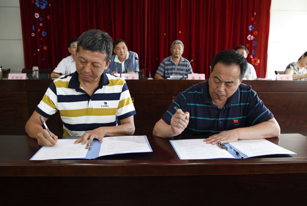 队党委书记方招信与七里站街道廿埠社居委叶文生书记续签文明共建协议书