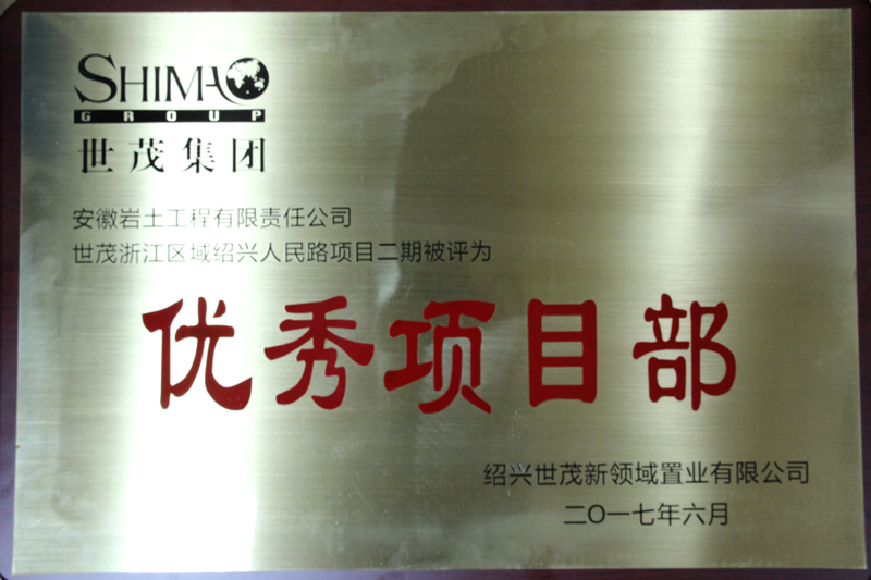 近日,我队岩土上海分公司绍兴人民路项目部被建设单位绍兴世茂新领域置业有限公司评为“优秀项目部”,项目经理李颛还荣获绍兴世茂人民路2#地块二期桩基工程优秀“项目经理”称号。
