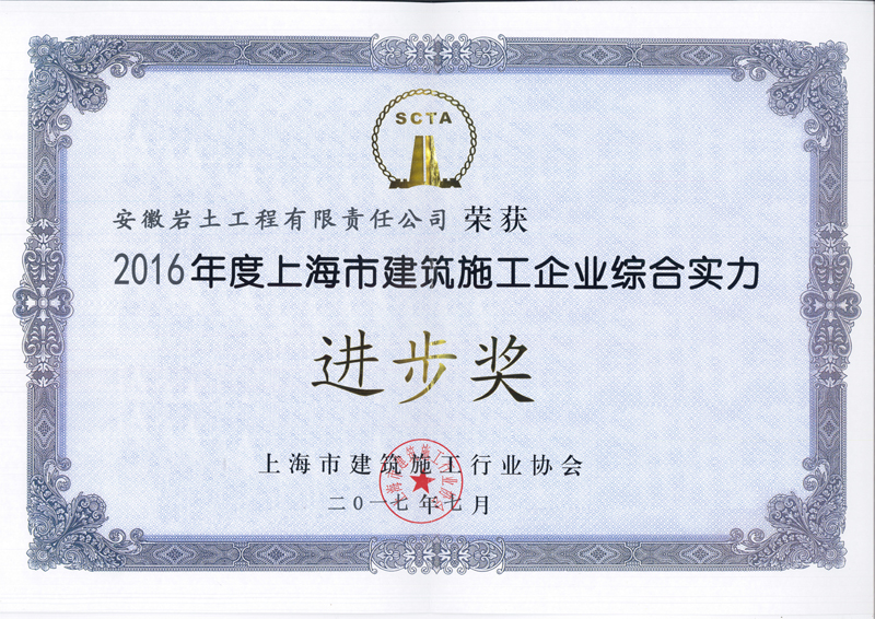 8月8日下午,上海市建筑施工企业系列创优评优活动结果揭晓,我队安徽岩土工程有限责任公司获得了 “2016年度上海市建筑业诚信企业”荣誉称号,这是该公司连续第十次获得此项殊荣,同时该公司还斩获了“2016年度上海市建筑施工企业综合实力进步奖”。岩土上海分公司相关负责人登台领取了奖状。